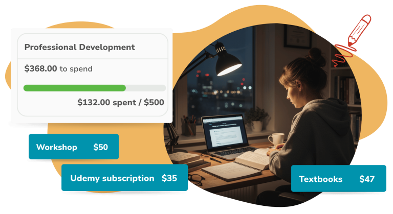 It’s completely customizable. Companies commonly allow books, online courses, conferences, certifications, coaching, and more. You choose the categories, employees choose how to grow.